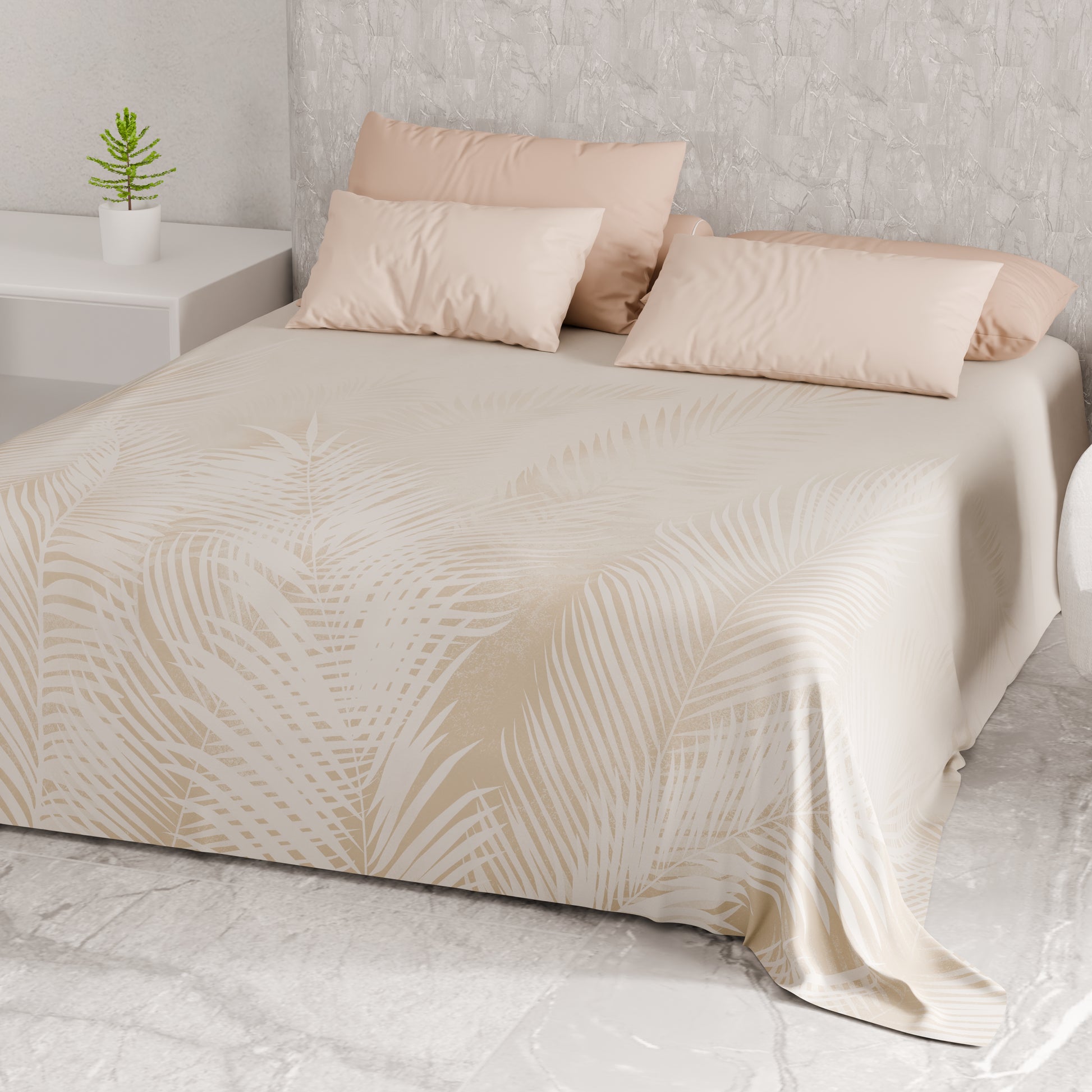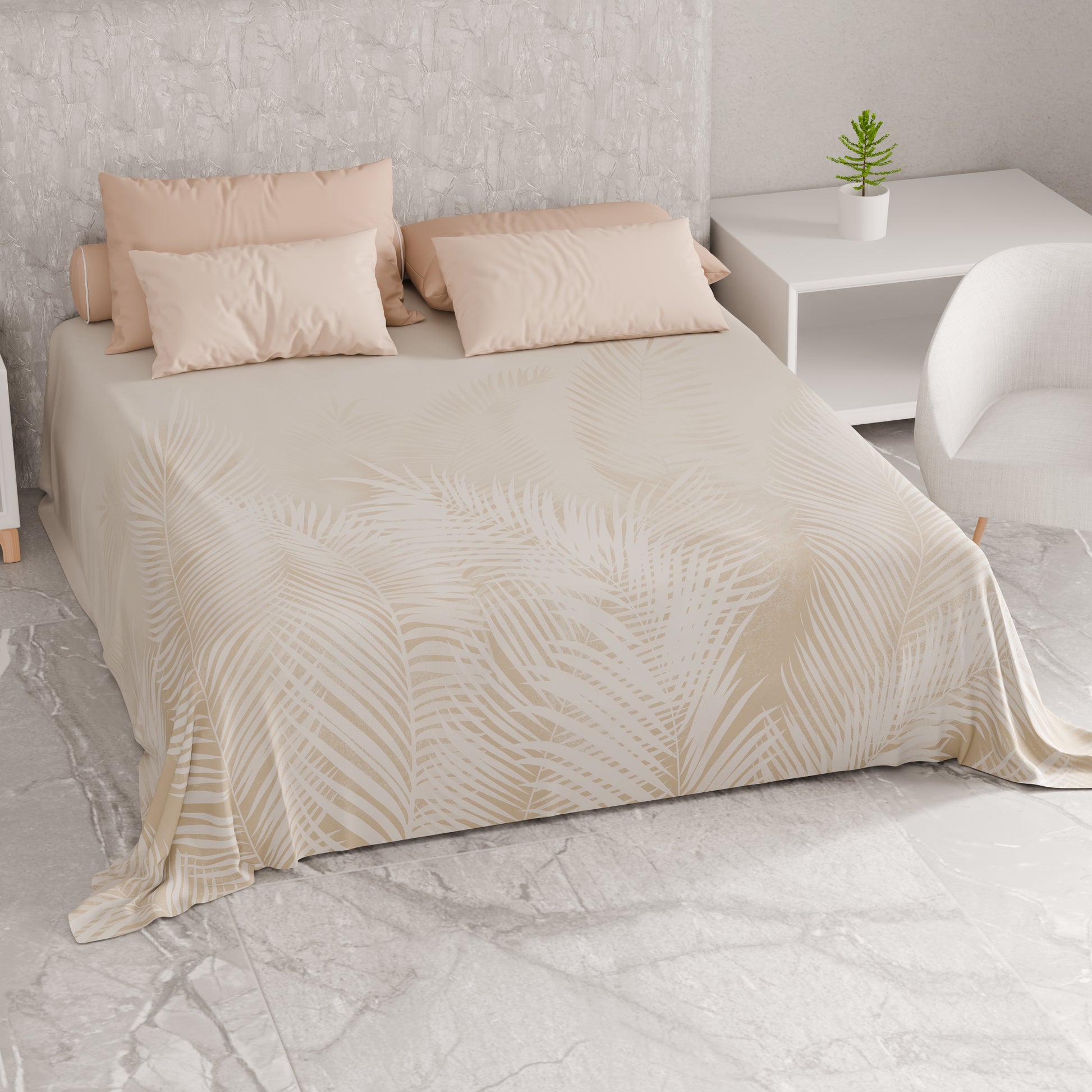 Telo Arredo Copridivano, Copriletto, Copritavolo e Copritutto in Microfibra | Fantasia Foglia Tortora